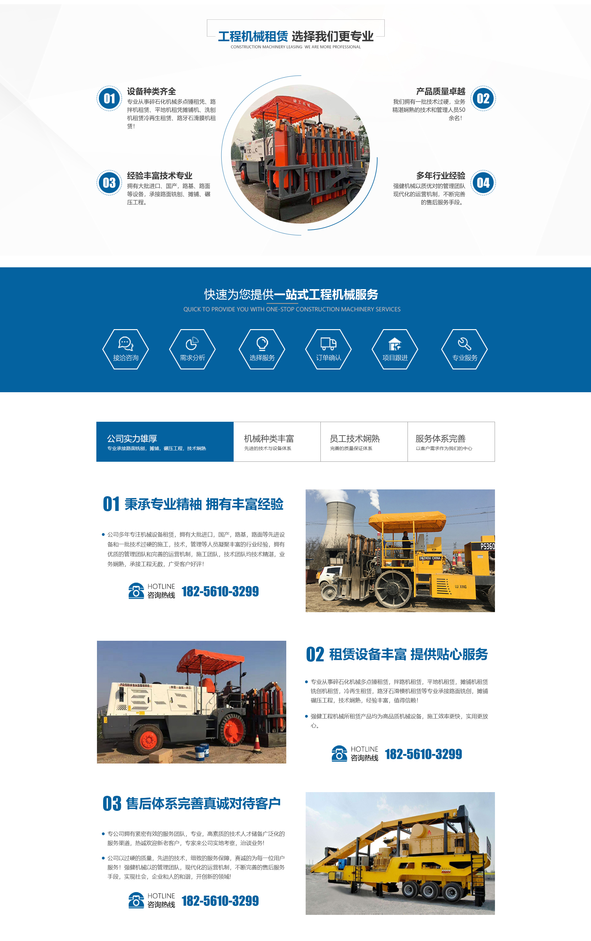 安徽強(qiáng)建工程機(jī)械有限公司是一家專(zhuān)業(yè)從事碎石化機(jī)械多點(diǎn)錘租賃、路拌機(jī)租賃、平地機(jī)租賃攤鋪機(jī)、洗刨機(jī)租賃、冷再生租賃、路牙石滑膜機(jī)租賃的企業(yè)。擁有大批進(jìn)口、國(guó)產(chǎn),路基、路面等設(shè)備,承接路面銑刨、攤鋪、碾壓工程,還有一批技術(shù)過(guò)硬、素質(zhì)的施工、技術(shù)、管理等人員!技術(shù)和管理人員50余名,全部為大專(zhuān)以上學(xué)歷,技術(shù)精湛,業(yè)務(wù)嫻熟。強(qiáng)健機(jī)械以的管理團(tuán)隊(duì),現(xiàn)代化的運(yùn)營(yíng)機(jī)制,不斷完善的售后服務(wù)手段,實(shí)現(xiàn)社會(huì),企業(yè)和人的和諧,開(kāi)創(chuàng)新的領(lǐng)域!強(qiáng)健公司熱誠(chéng)歡迎新老客戶(hù)、專(zhuān)家來(lái)公司實(shí)地考察,洽談業(yè)務(wù)!